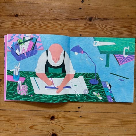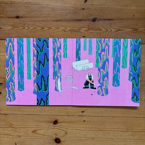 Its a vibrant title about a carpenter who makes his own coffin, starting and ending in the forest. It is one of those books that captures your attention and not just to the colour palette.