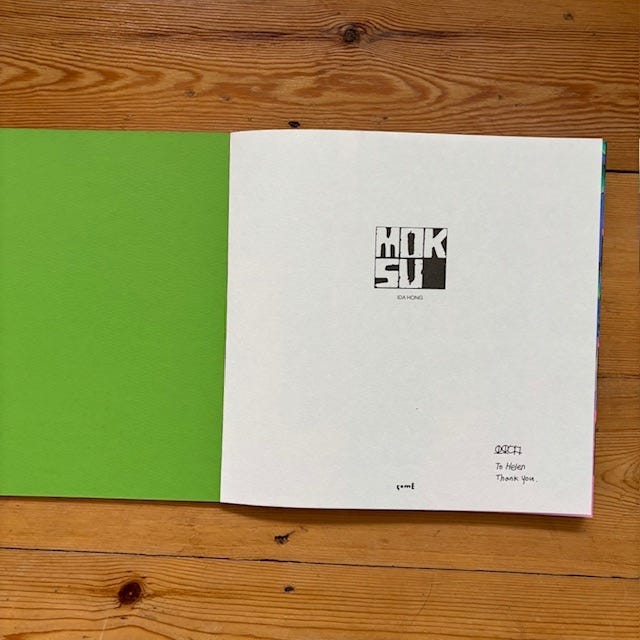 I bought this book at Bologna 2023, it was the first time I had come across this publisher but their work is incredible. It is run by Cho Sun Kyung, who also runs SIP (Some Institute of Picture Books). They make small batches of hand bound books, that are exquisitely printed. Moksu was created by Ida Hong and published by SOMEBOOKS in 2022.
